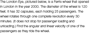 The diameter of the Ferris wheel in Figure 3 is \(250\) feet, and \(\theta\) is the central angle formed as a rider travels his or her initial position \(P_0\) to position \(P_1\). Find the distance traveled by the rider if \(\theta=45^\circ\) and if \(\theta=105^\circ\).