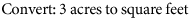 A farmer has \(75\) acres of land. How many square feet of land does the farmer have?