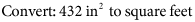 A poster measures \(36\) inches by \(24\) inches. How many square feet of wall space will the poster cover?