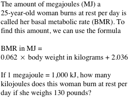 If a person weighs \(125\) pounds, what is her weight in kilograms?